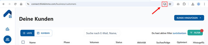 Unsere Web App ist auf allen Geräten verfügbar. Sie bietet dir einen deutlich schnelleren Zugriff auf ThinkImmo Connect, da du die Anwendung direkt per Klick öffnen kannst. Zudem läuft die App flüssiger und reagiert schneller als auf dem Browser. Die Installation dauert nur wenige Minuten und wird im Folgenden Schritt für Schritt erklärt.