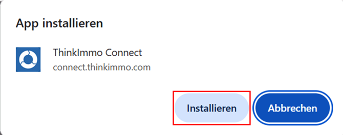 Fertig. Die ThinkImmo Web App ist jetzt installiert und jederzeit mit einem Klick erreichbar.