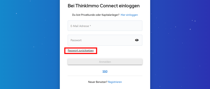 Öffne zuerst diesen Link. Der führt dich zum Login. https://connect.thinkimmo.com/business/forgot_password