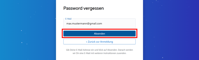 Gib im Feld deine E‑Mail‑Adresse ein und klicke auf "Absenden".