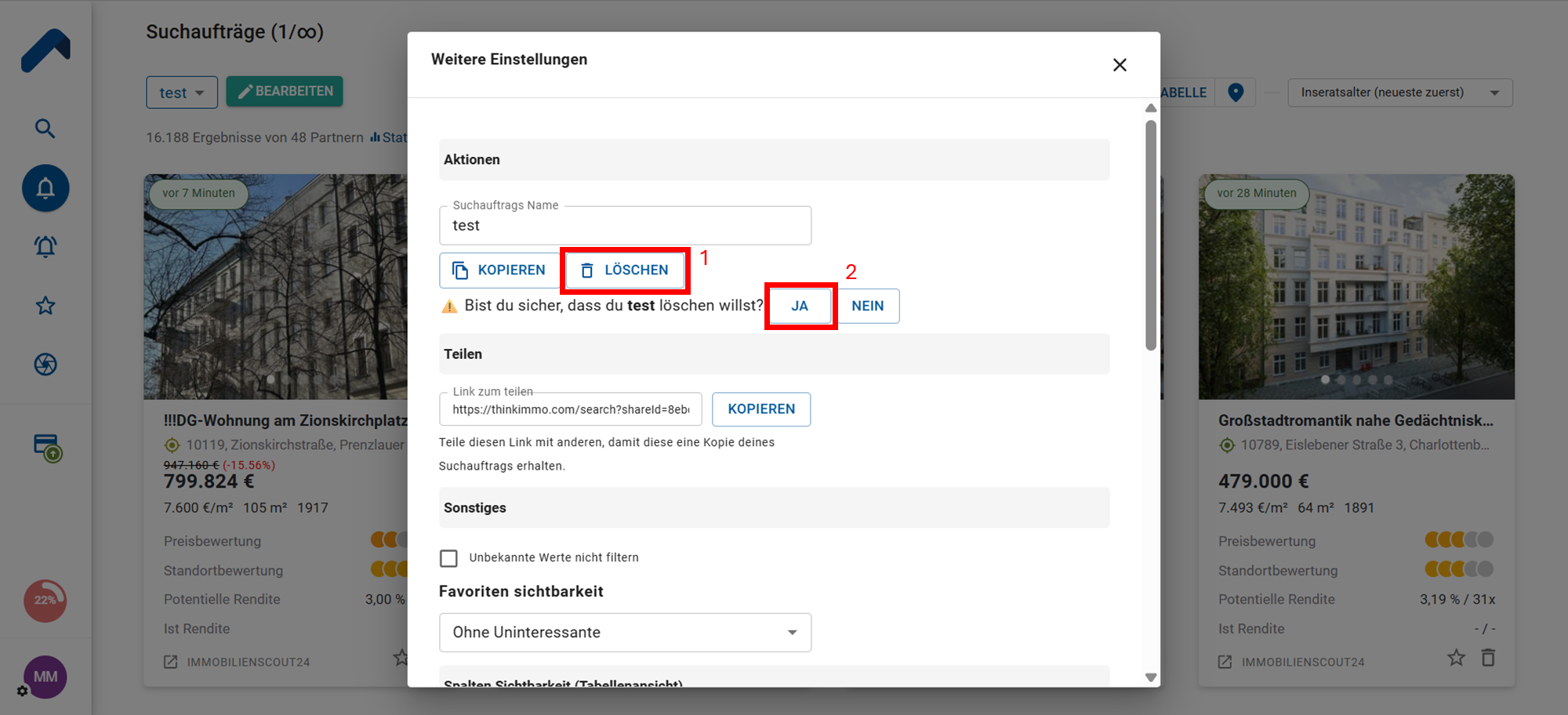 Einen Suchauftrag bei ThinkImmo löschen: